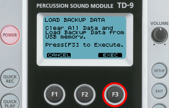 - F2 (LOAD) -- Used to read data from a USB Flash Drive into your TD-9,